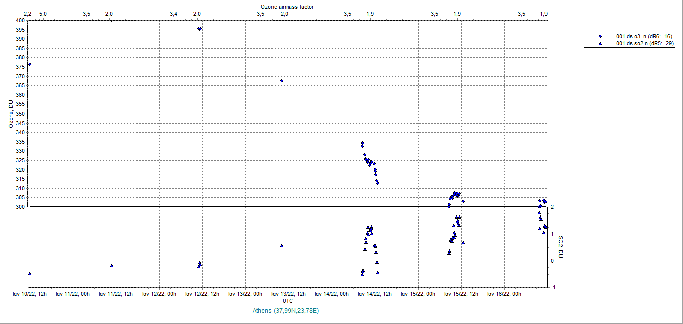 Ozone timeseries from 10/01/2022 to 17/01/2022