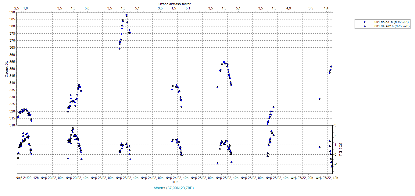 Ozone timeseries from 21/02/2022 to 28/02/2022