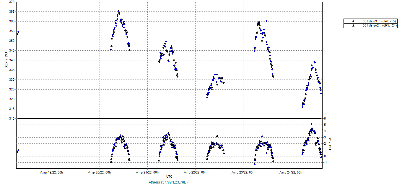 Ozone timeseries from 18/04/2022 to 25/04/2022
