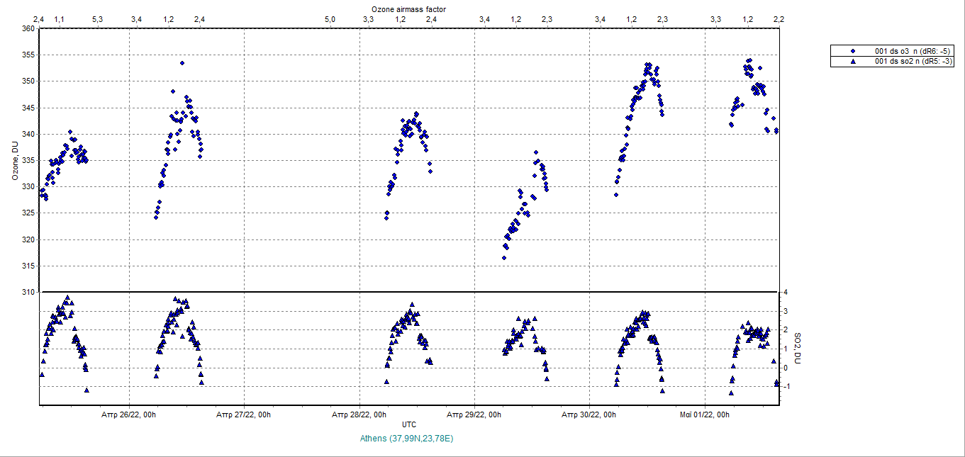 Ozone timeseries from 25/04/2022 to 02/05/2022