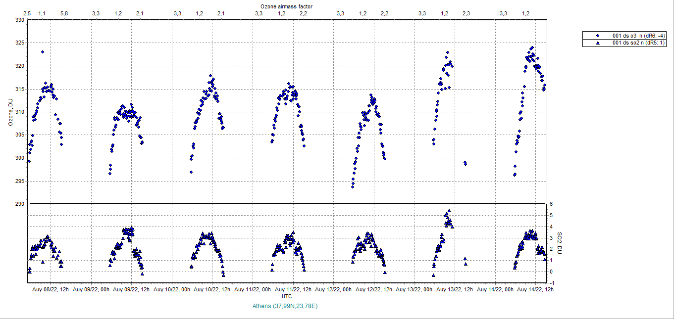 Ozone timeseries from 08/08/2022 to 15/08/2022