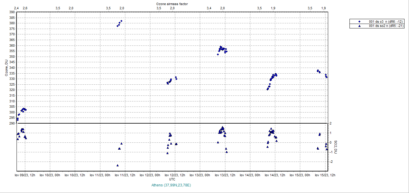 Ozone timeseries from 09/01/2023 to 16/01/2023