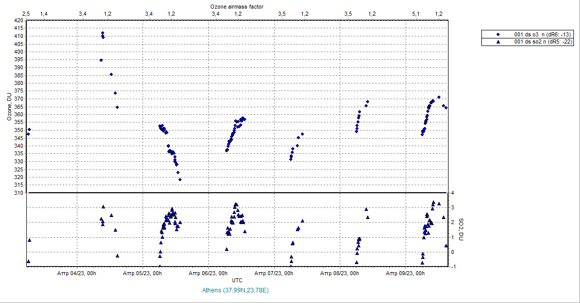Ozone timeseries from 03/04/2023 to 10/04/2023
