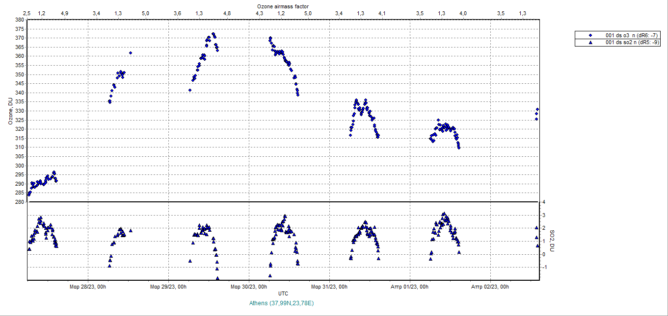 Ozone timeseries from 27/03/2023 to 03/04/2023
