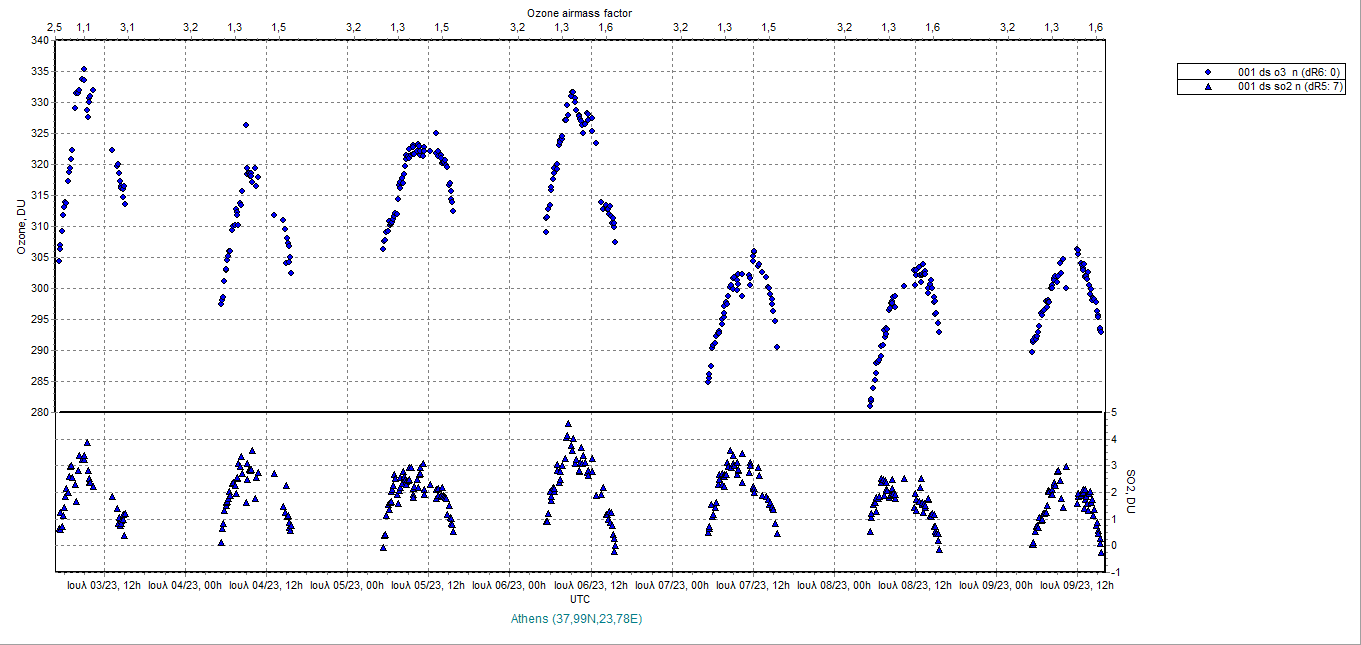 Ozone timeseries from 03/07/2023 to 10/07/2023