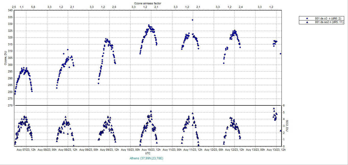 Ozone timeseries from 07/08/2023 to 14/08/2023