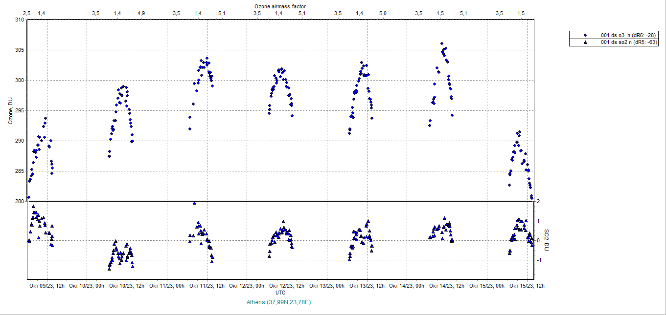 Ozone timeseries from 09/10/2023 to 16/10/2023