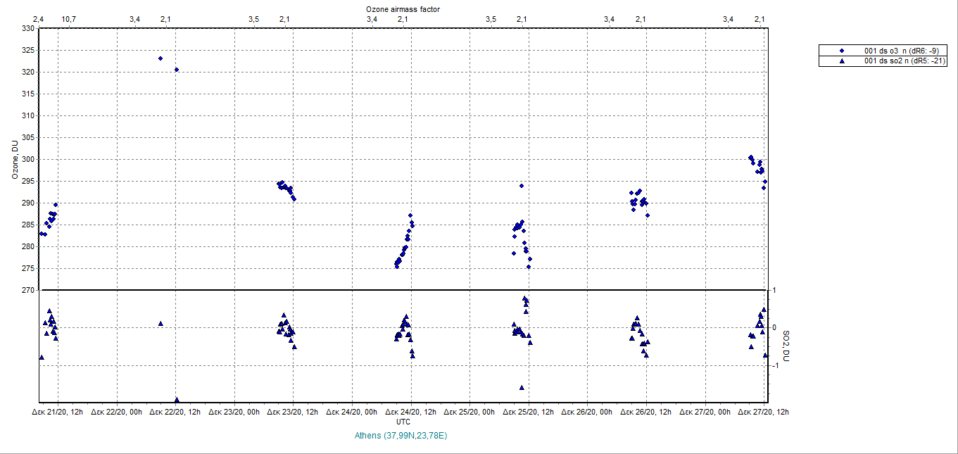 Ozone timeseries from 21/12/2020 to 28/12/2020