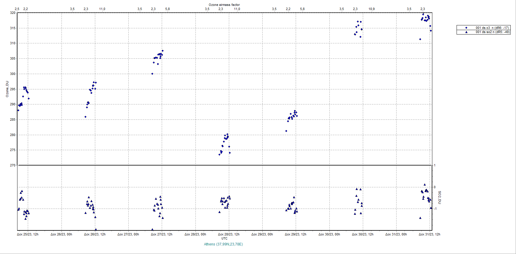 Ozone timeseries from 25/12/2023 to 01/01/2024