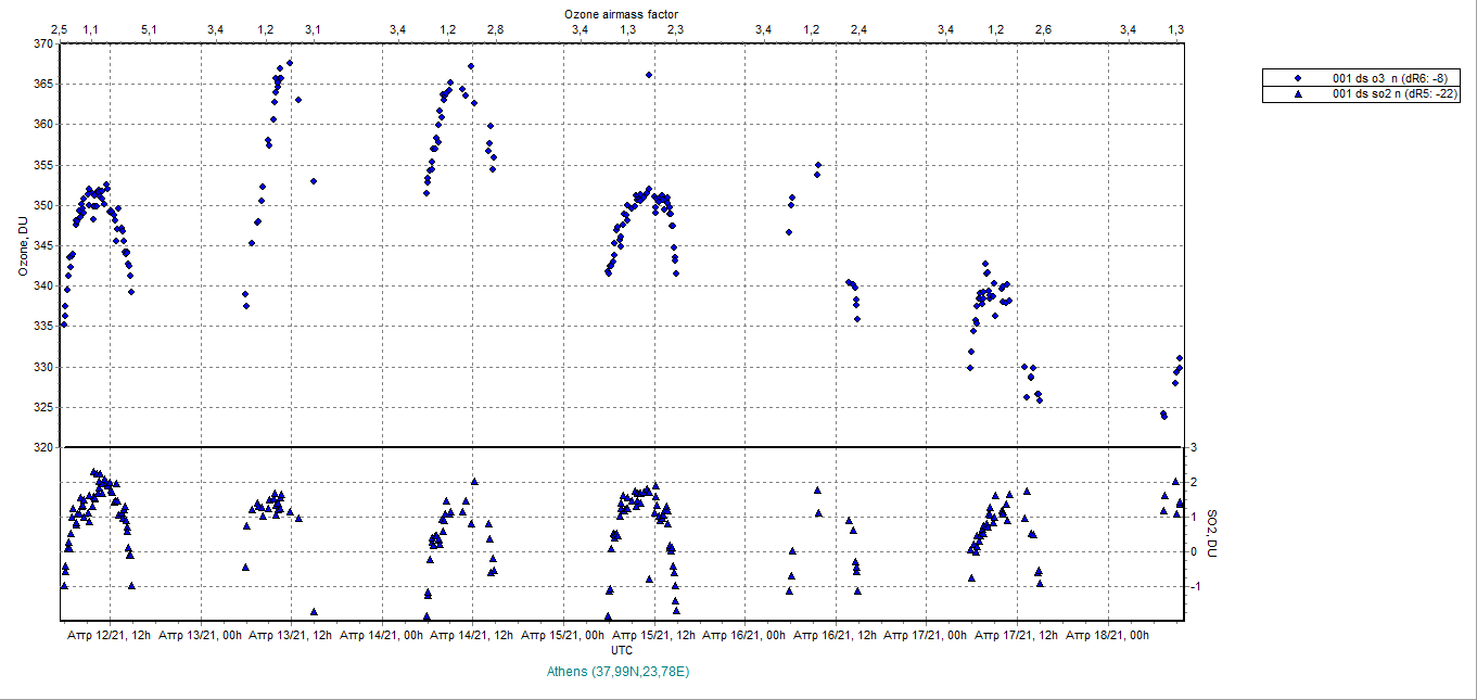 Ozone timeseries from 12/04/2021 to 19/04/2021