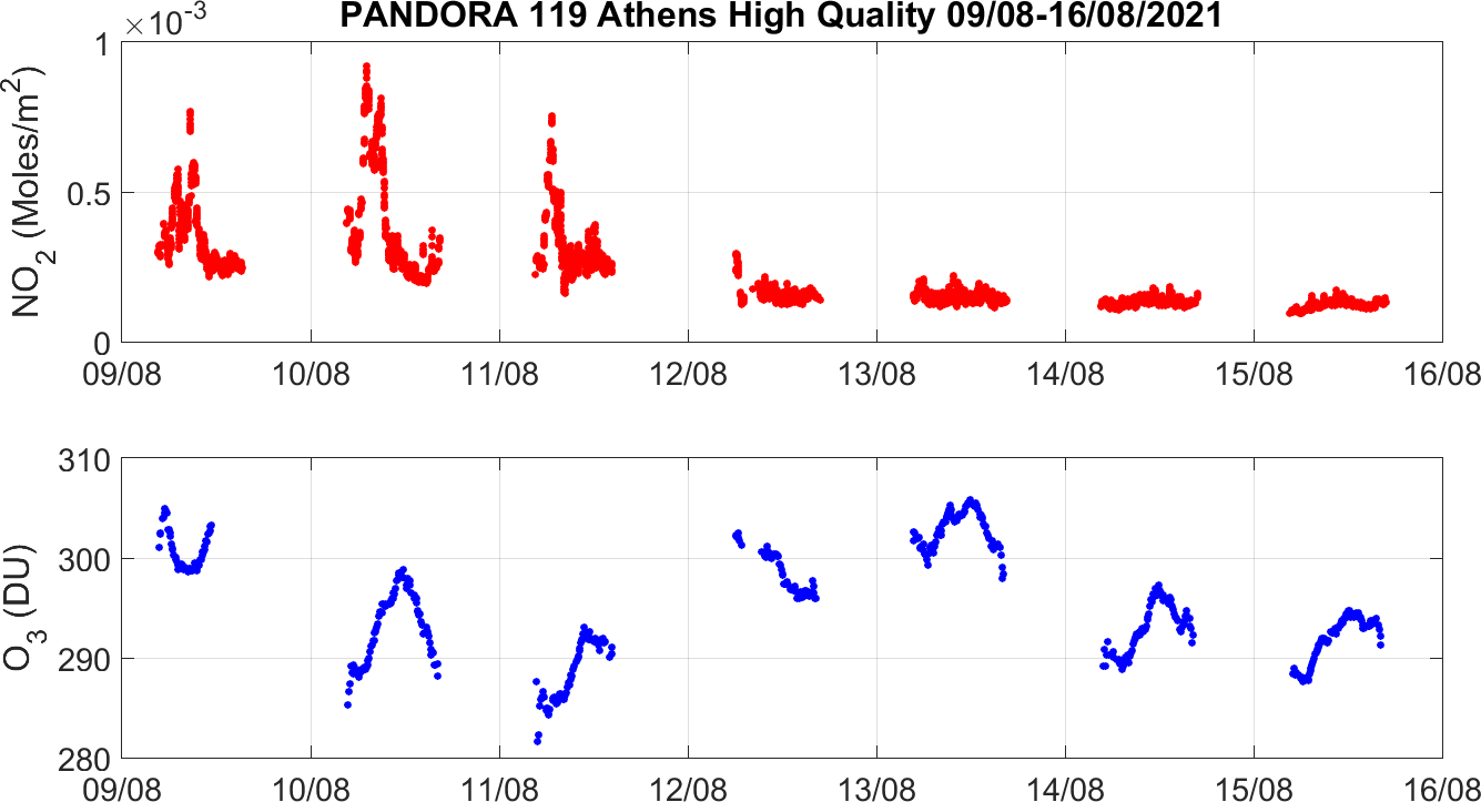 Weekly NO2 & O3 timeseries from 09/08/2021 to 16/08/2021