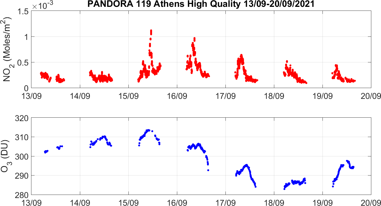 Weekly NO2 & O3 timeseries from 13/09/2021 to 20/09/2021