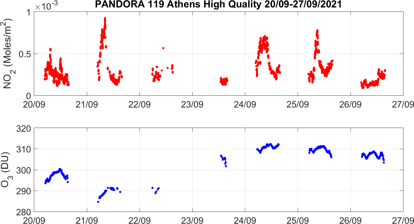 Weekly NO2 & O3 timeseries from 20/09/2021 to 27/09/2021