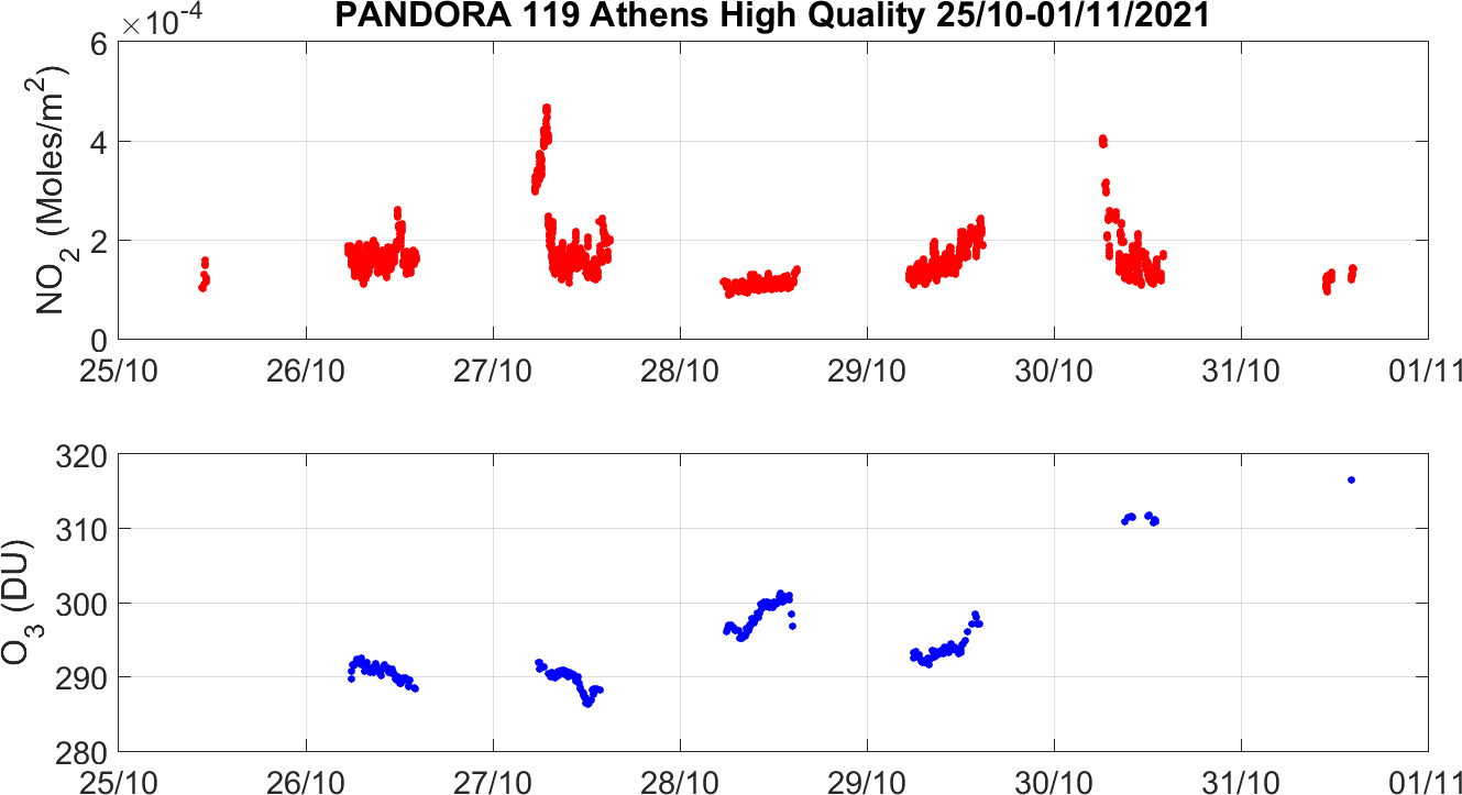 Weekly NO2 & O3 timeseries from 25/10/2021 to 01/11/2021