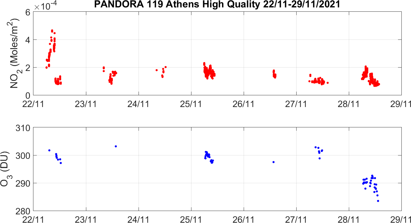 Weekly NO2 & O3 timeseries from 22/11/2021 to 29/11/2021