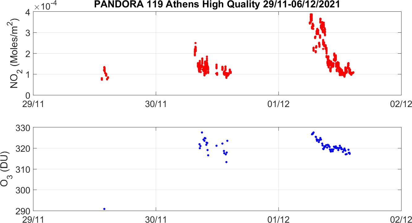 Weekly NO2 & O3 timeseries from 29/11/2021 to 06/12/2021
