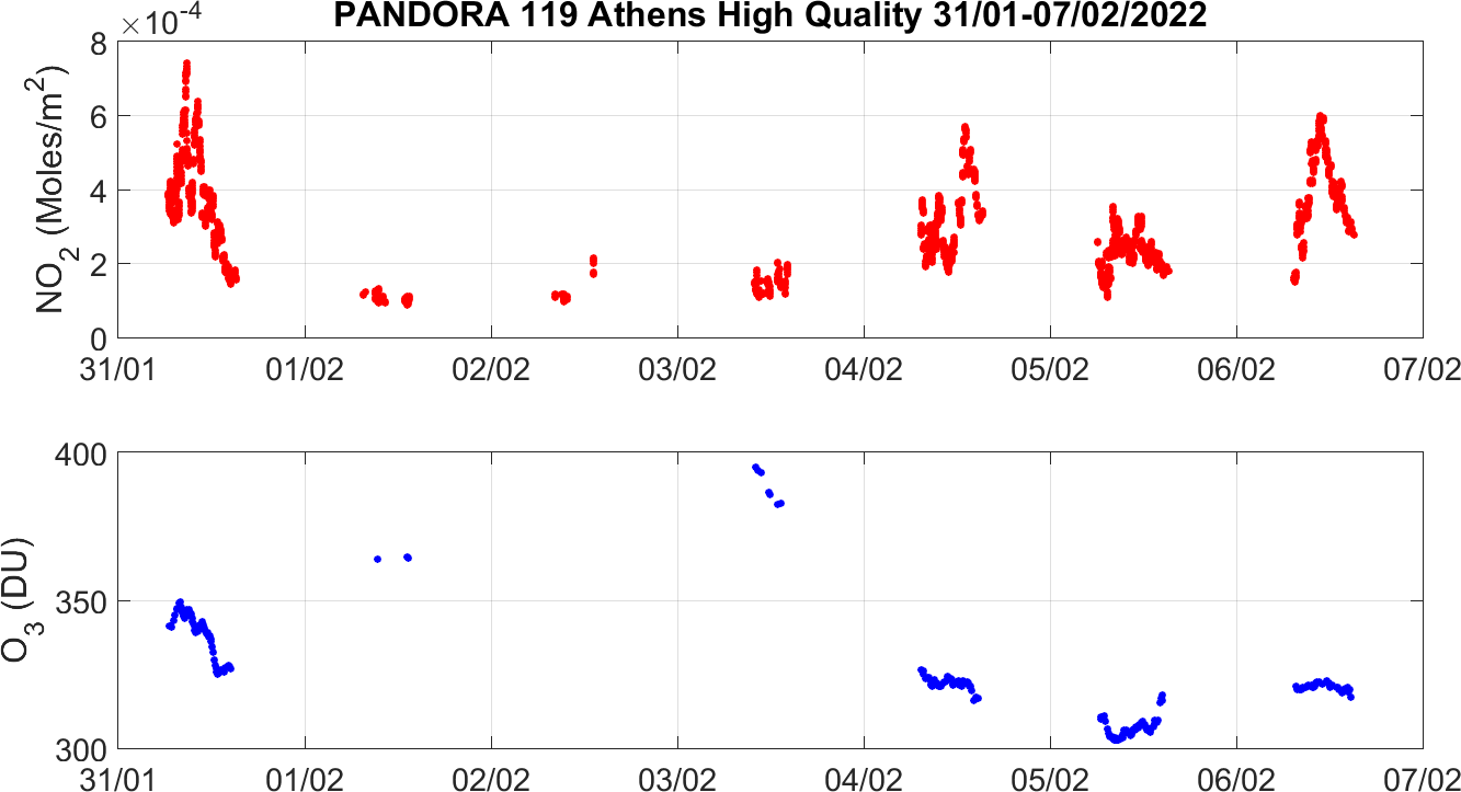 Weekly NO2 & O3 timeseries from 31/01/2022 to 07/02/2022