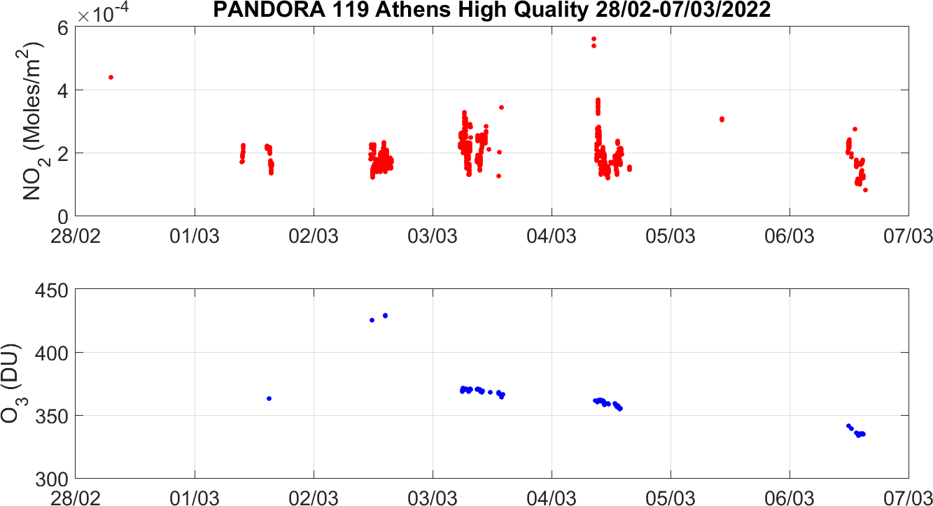Weekly NO2 & O3 timeseries from 28/02/2022 to 07/03/2022