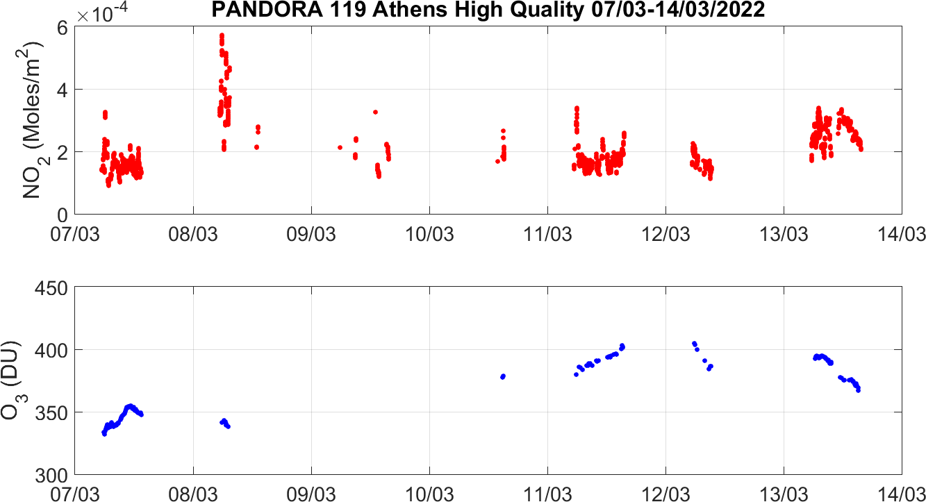Weekly NO2 & O3 timeseries from 07/03/2022 to 14/03/2022