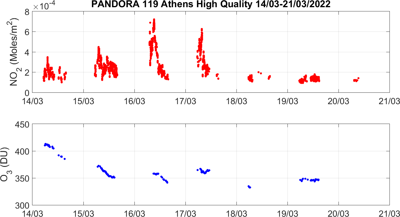 Weekly NO2 & O3 timeseries from 14/03/2022 to 21/03/2022