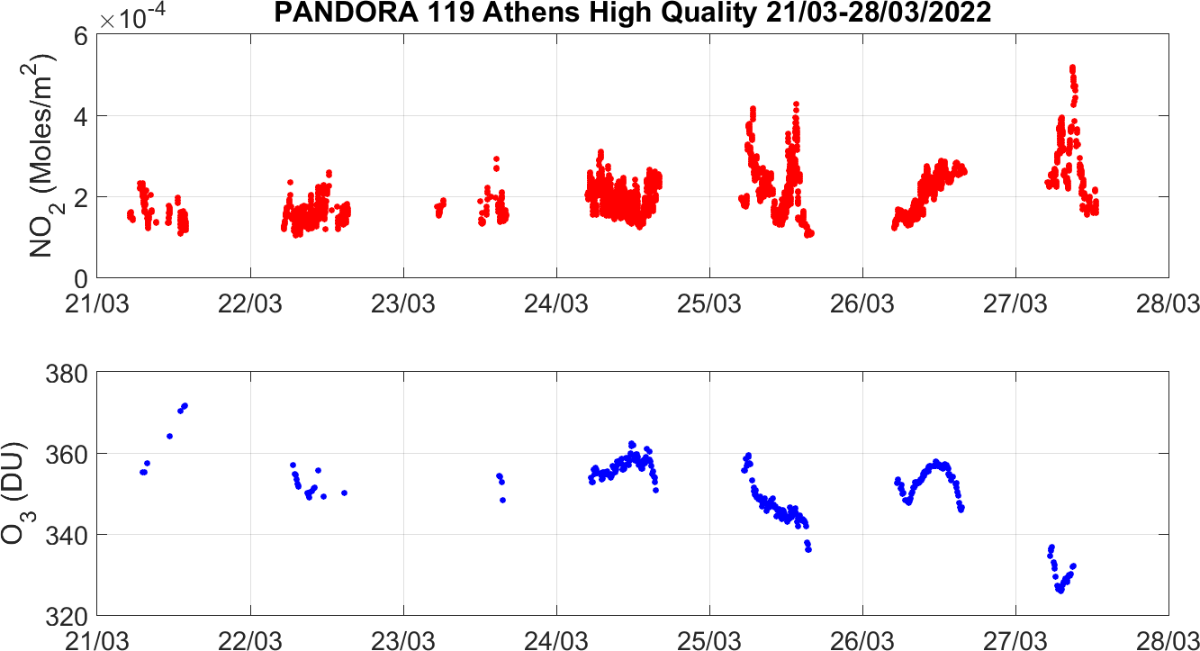Weekly NO2 & O3 timeseries from 21/03/2022 to 28/03/2022