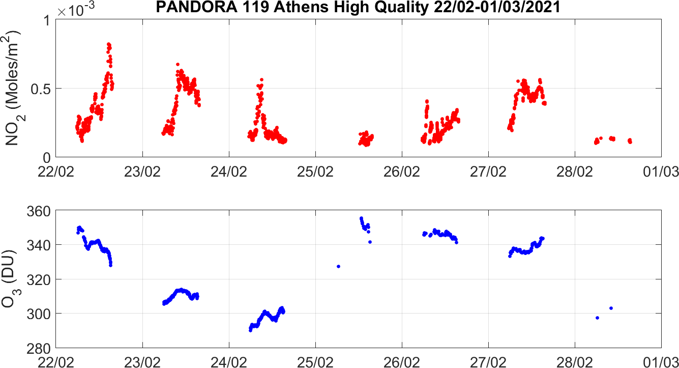 Weekly NO2 & O3 timeseries from 22/02/2021 to 01/03/2021