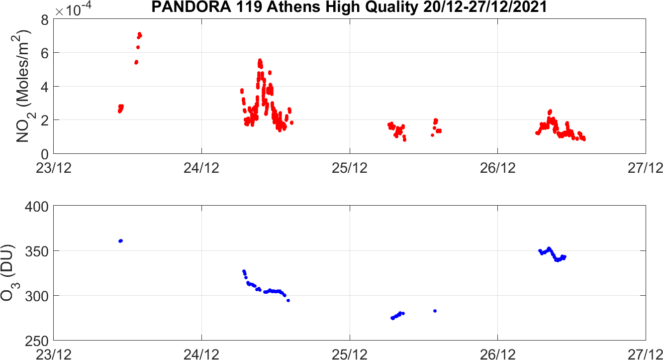 Weekly NO2 & O3 timeseries from 20/12/2021 to 27/12/2021