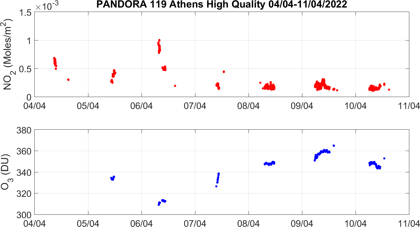 Weekly NO2 & O3 timeseries from 04/04/2022 to 11/04/2022