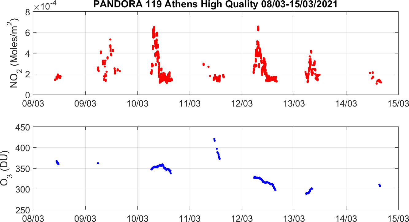 Weekly NO2 & O3 timeseries from 08/03/2021 to 15/03/2021