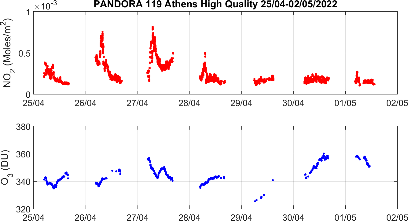Weekly NO2 & O3 timeseries from 25/04/2022 to 02/05/2022