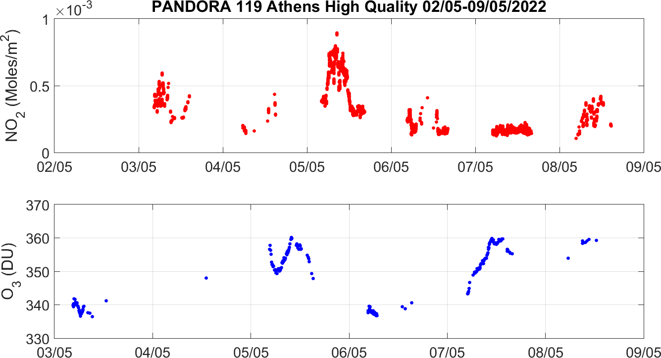 Weekly NO2 & O3 timeseries from 02/05/2022 to 09/05/2022