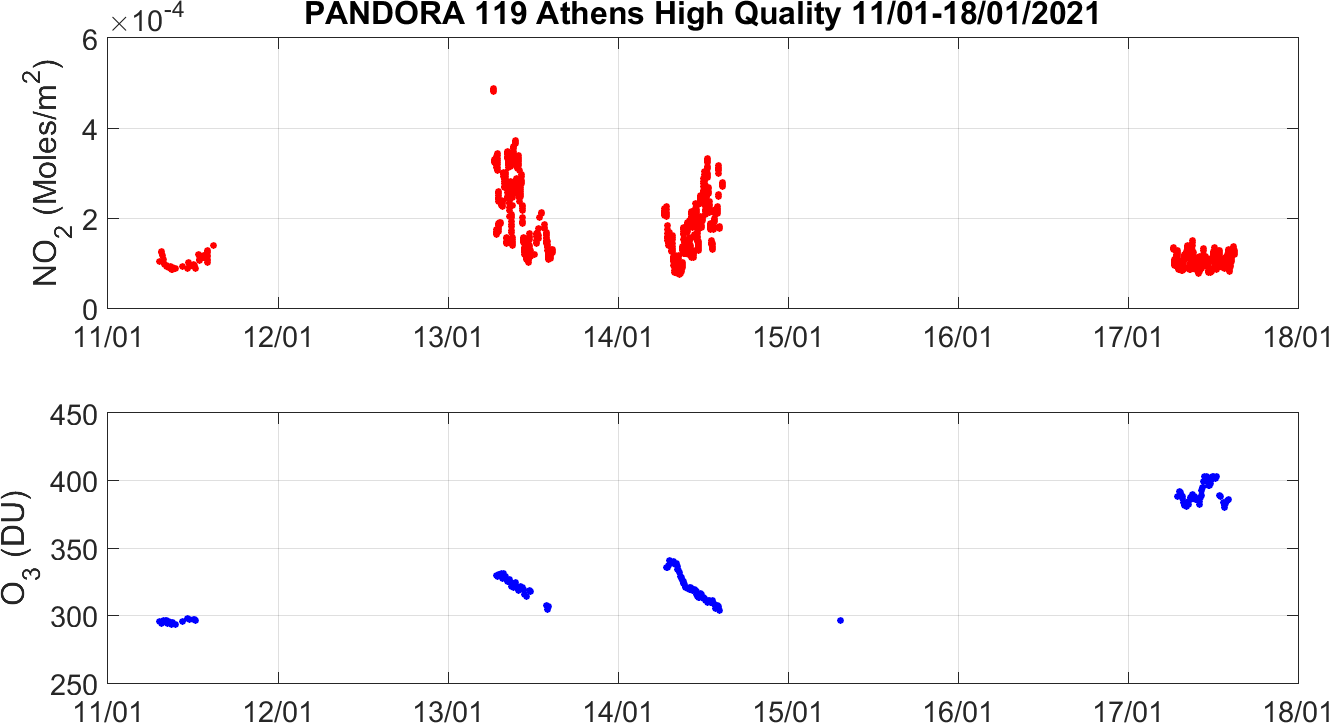 Weekly NO2 & O3 timeseries from 11/01/2021 to 18/01/2021