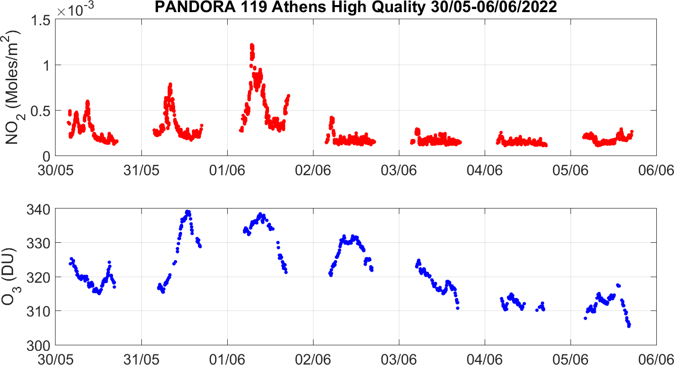 Weekly NO2 & O3 timeseries from 30/05/2022 to 06/06/2022