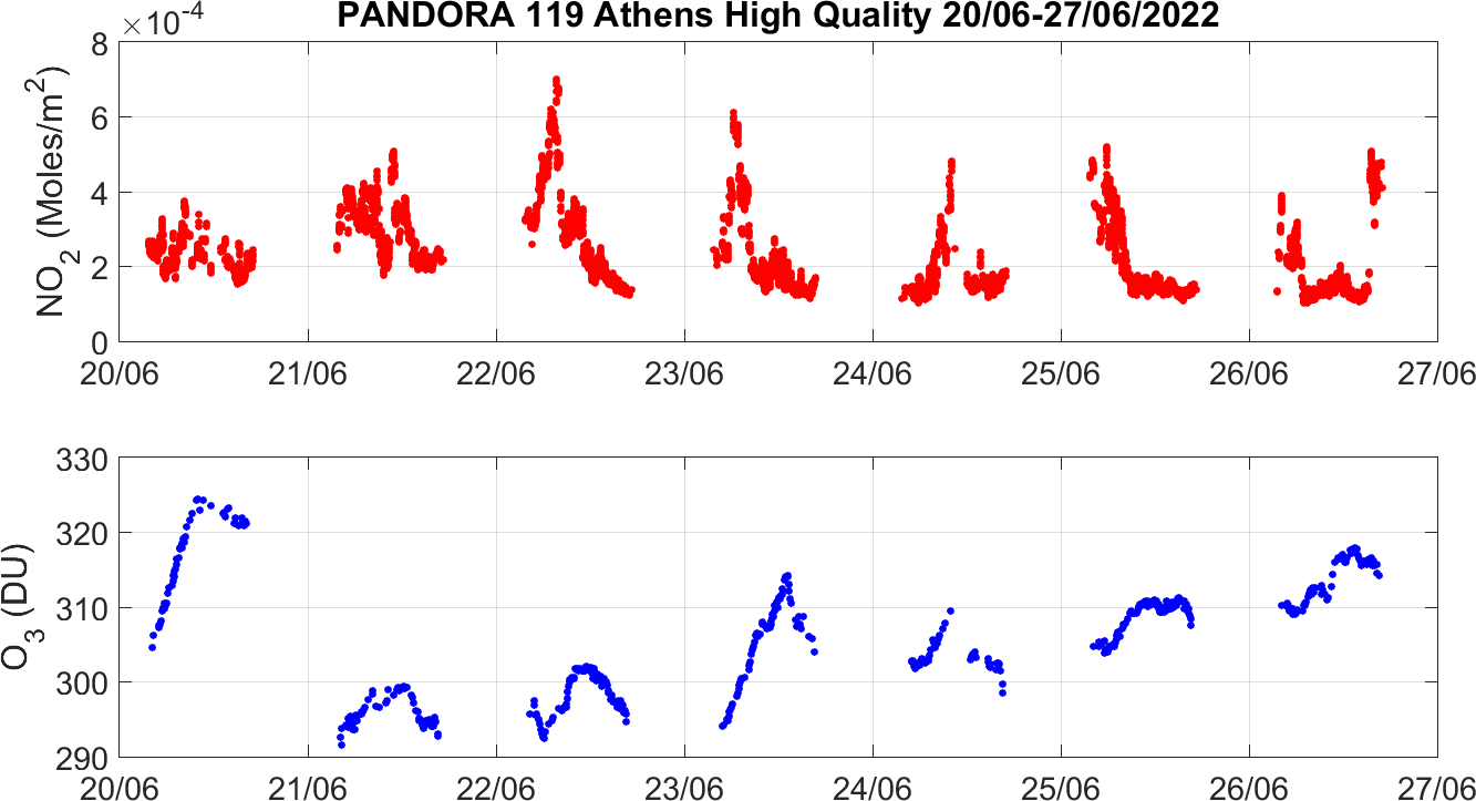 Weekly NO2 & O3 timeseries from 20/06/2022 to 27/06/2022