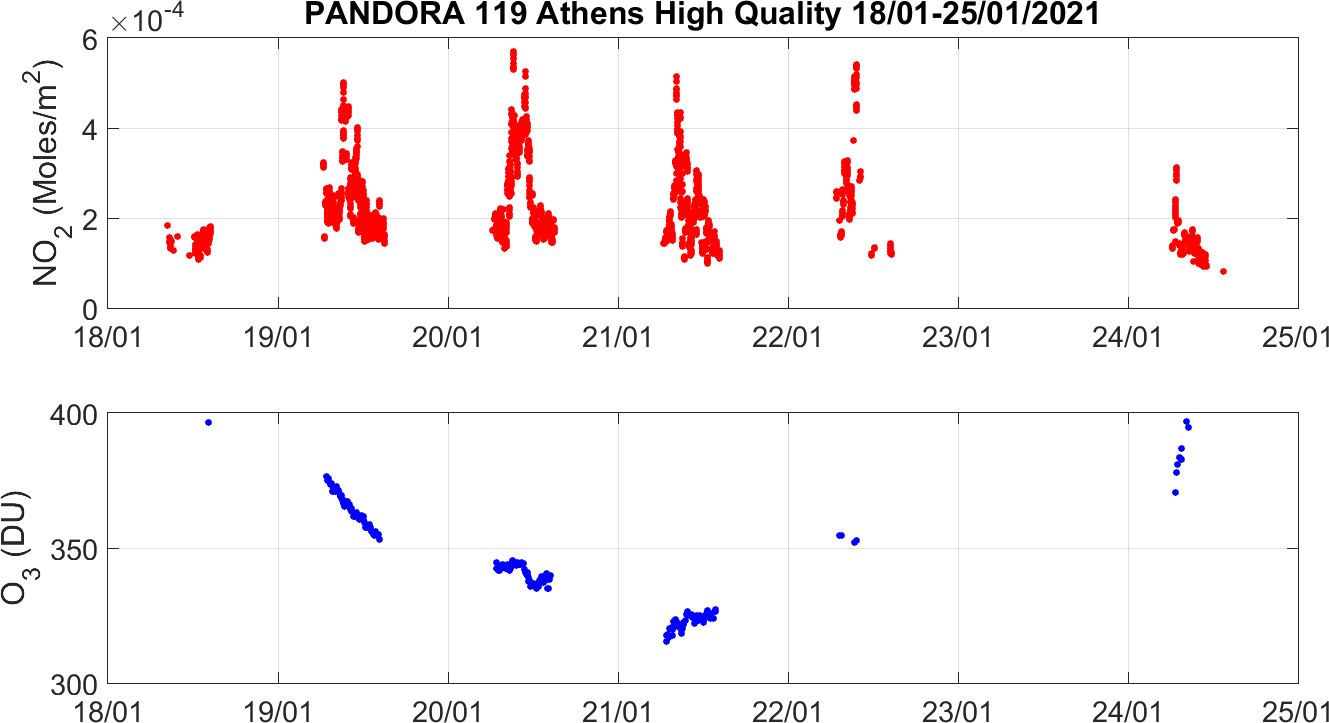 Weekly NO2 & O3 timeseries from 18/01/2021 to 25/01/2021