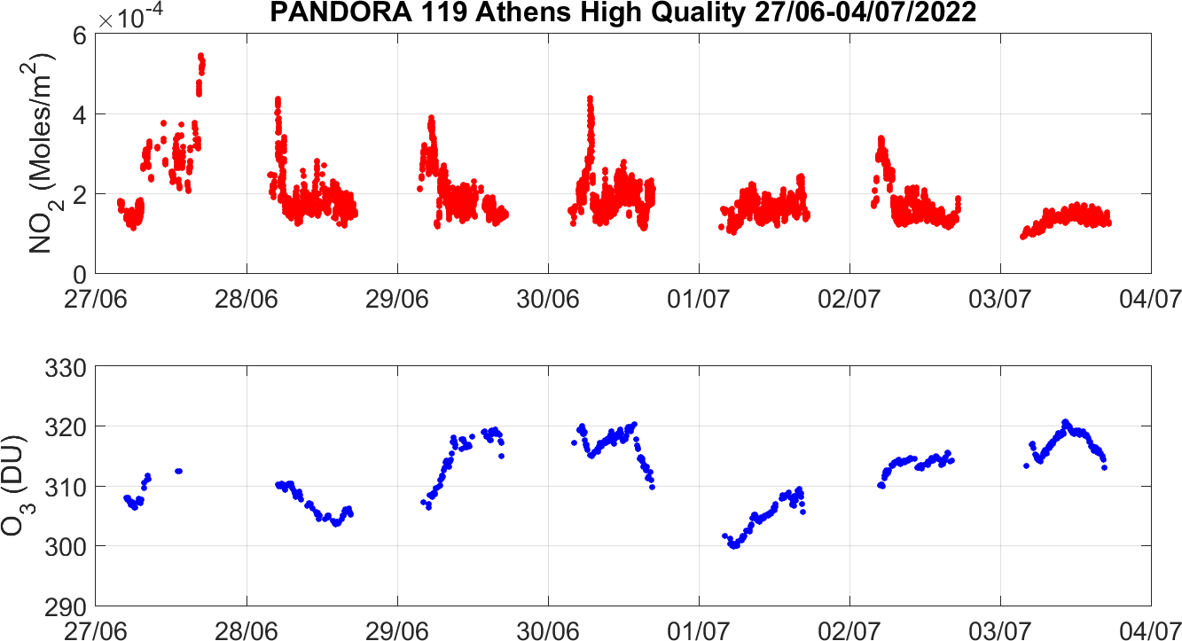 Weekly NO2 & O3 timeseries from 27/06/2022 to 04/07/2022