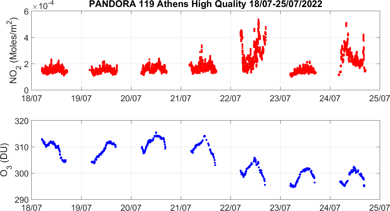 Weekly NO2 & O3 timeseries from 18/07/2022 to 25/07/2022