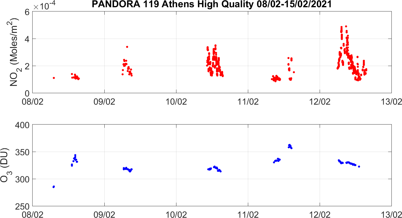 Weekly NO2 & O3 timeseries from 08/02/2021 to 15/02/2021