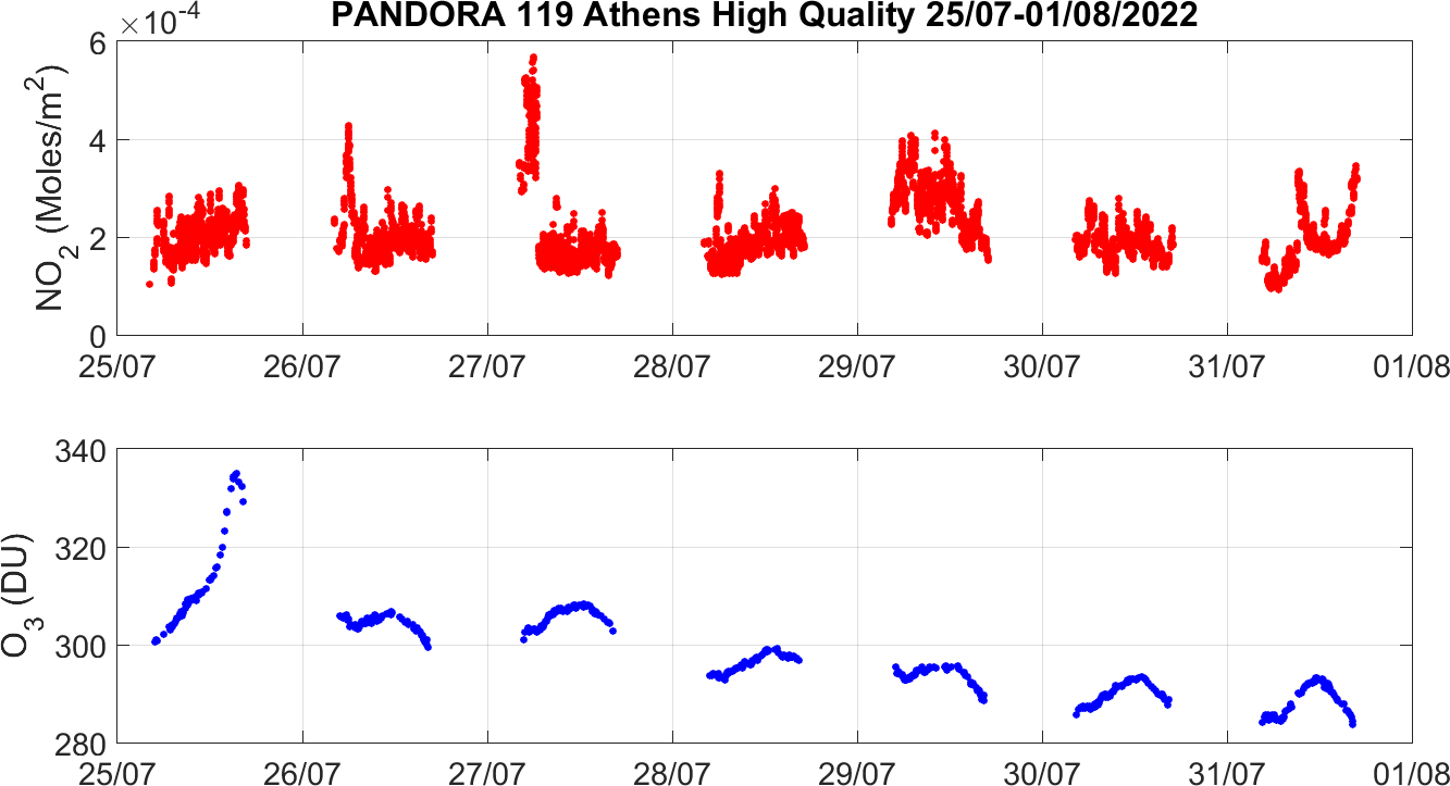 Weekly NO2 & O3 timeseries from 25/07/2022 to 01/08/2022