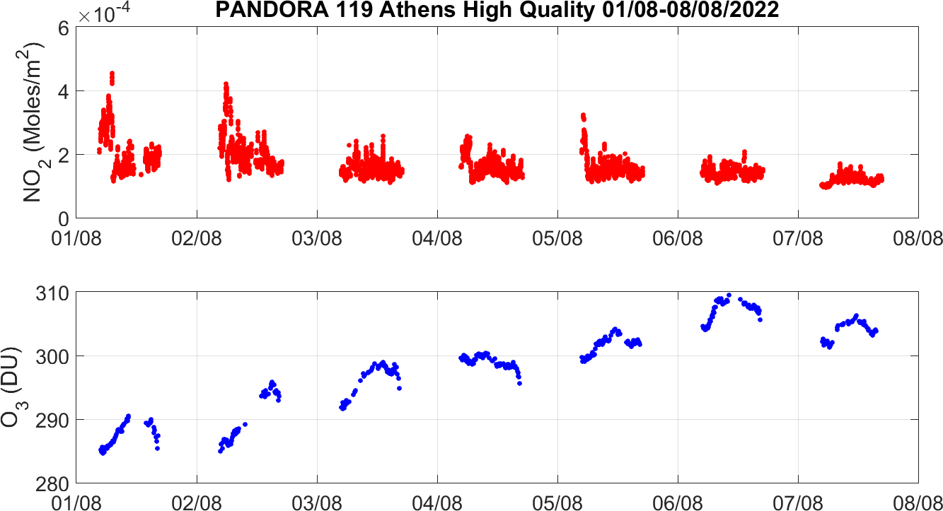 Weekly NO2 & O3 timeseries from 01/08/2022 to 08/08/2022