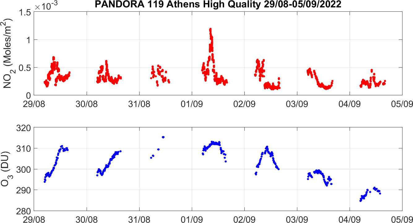 Weekly NO2 & O3 timeseries from 29/08/2022 to 05/09/2022