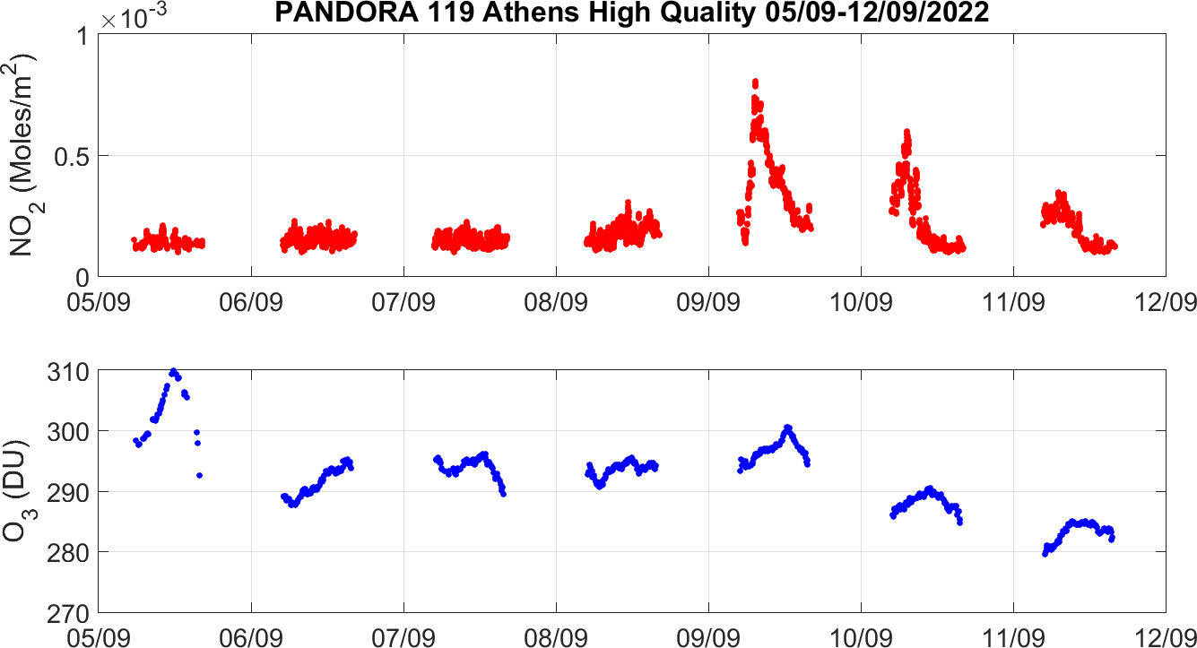 Weekly NO2 & O3 timeseries from 05/09/2022 to 12/09/2022