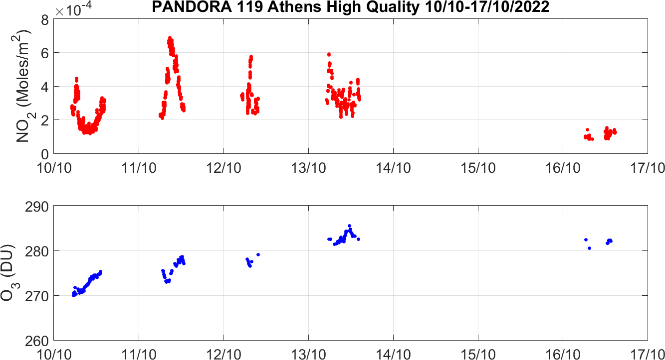 Weekly NO2 & O3 timeseries from 10/10/2022 to 17/10/2022