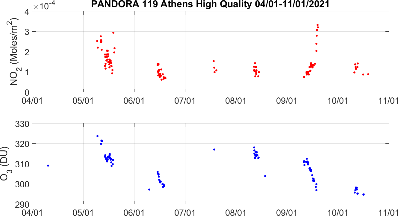 Weekly NO2 & O3 timeseries from 04/01/2021 to 11/01/2021