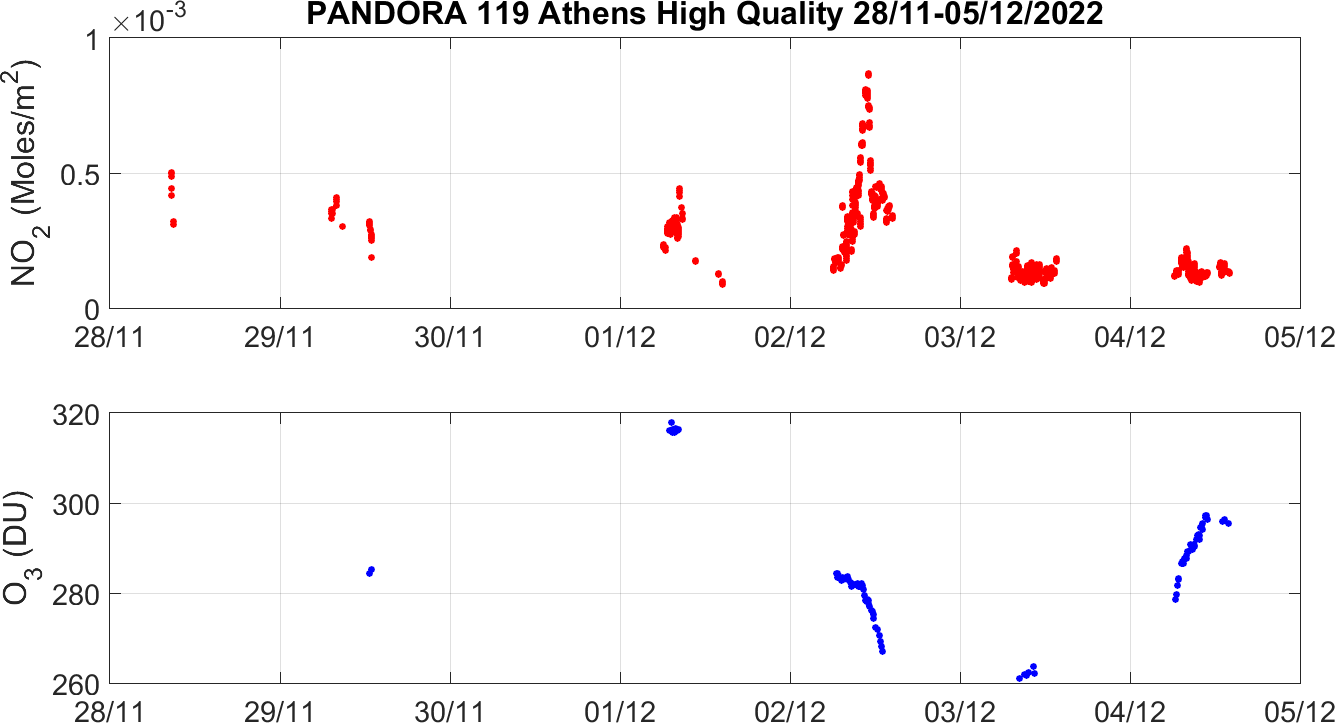 Weekly NO2 & O3 timeseries from 28/11/2022 to 05/12/2022