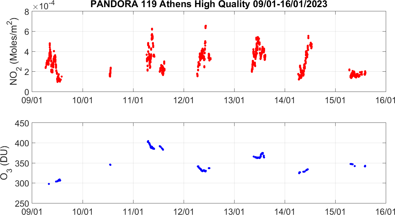 Weekly NO2 & O3 timeseries from 09/01/2023 to 16/01/2023