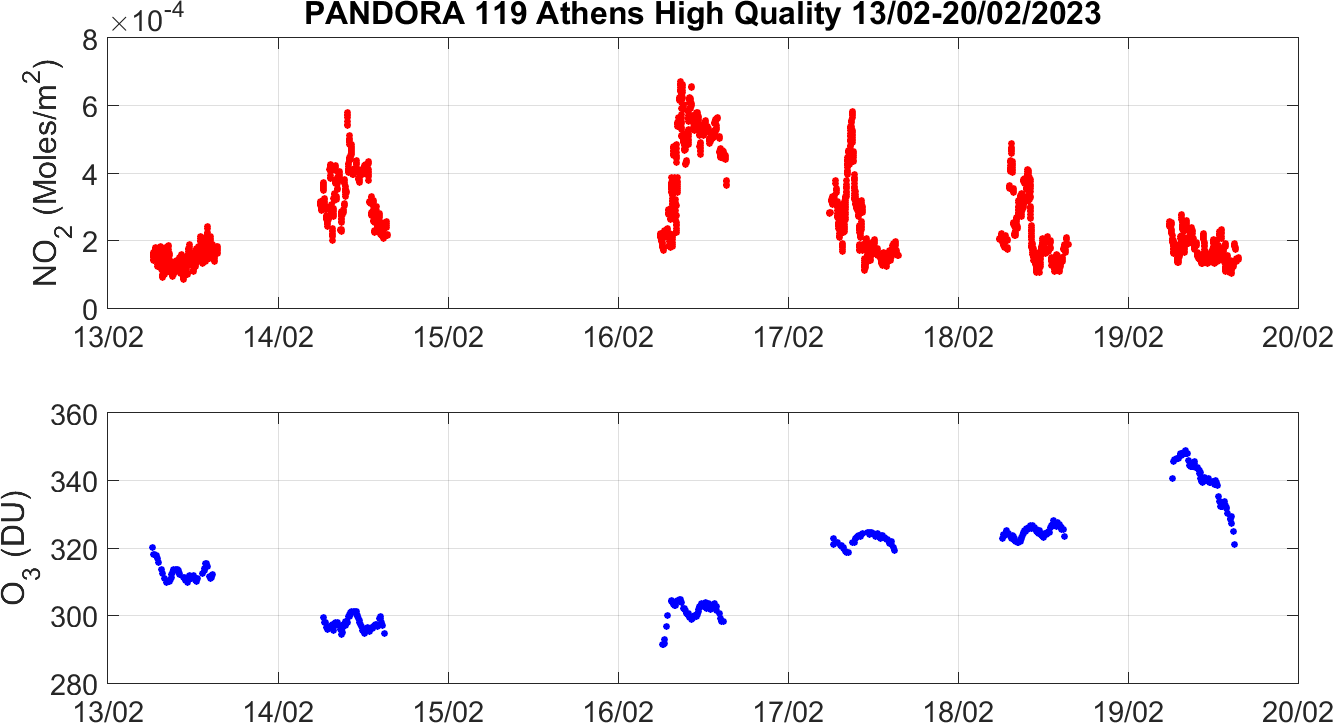 Weekly NO2 & O3 timeseries from 13/02/2023 to 20/02/2023