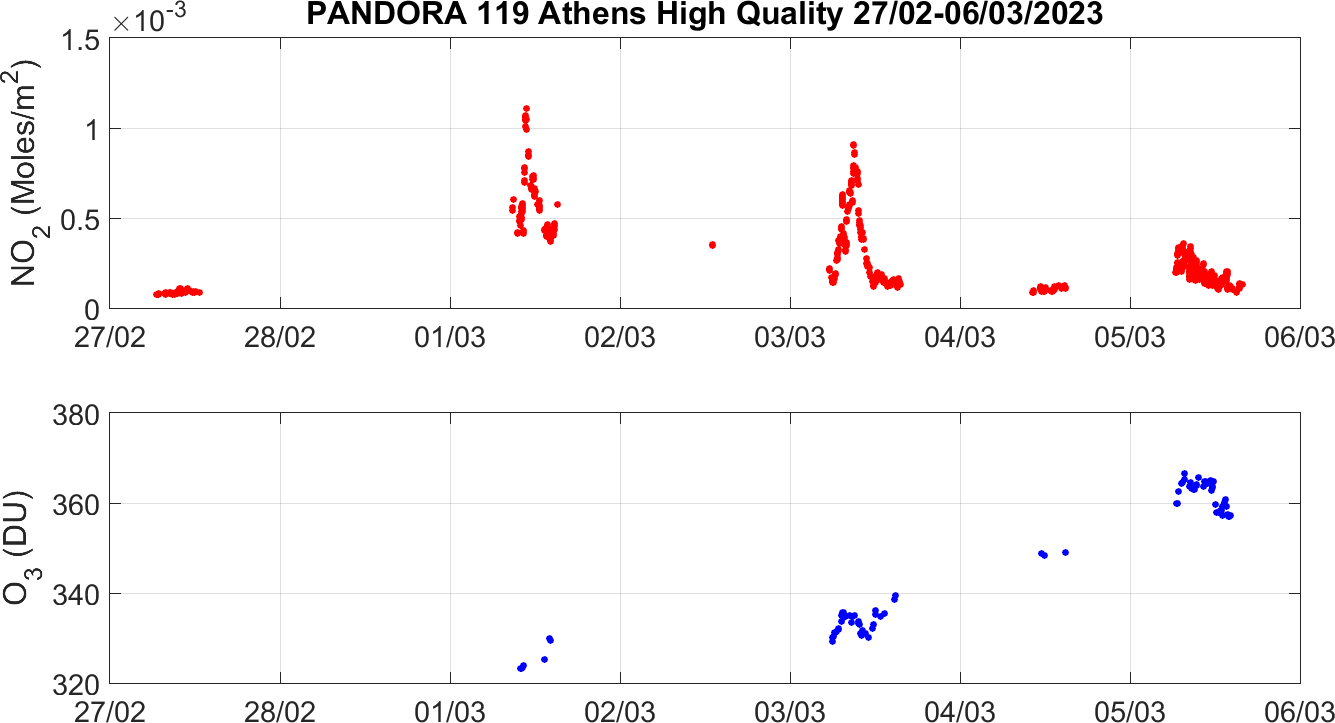 Weekly NO2 & O3 timeseries from 27/02/2023 to 06/03/2023