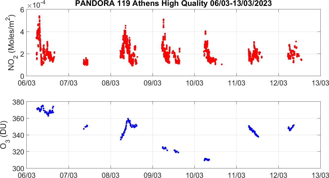Weekly NO2 & O3 timeseries from 06/03/2023 to 13/03/2023