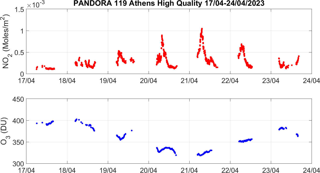Weekly NO2 & O3 timeseries from 17/04/2023 to 24/04/2023